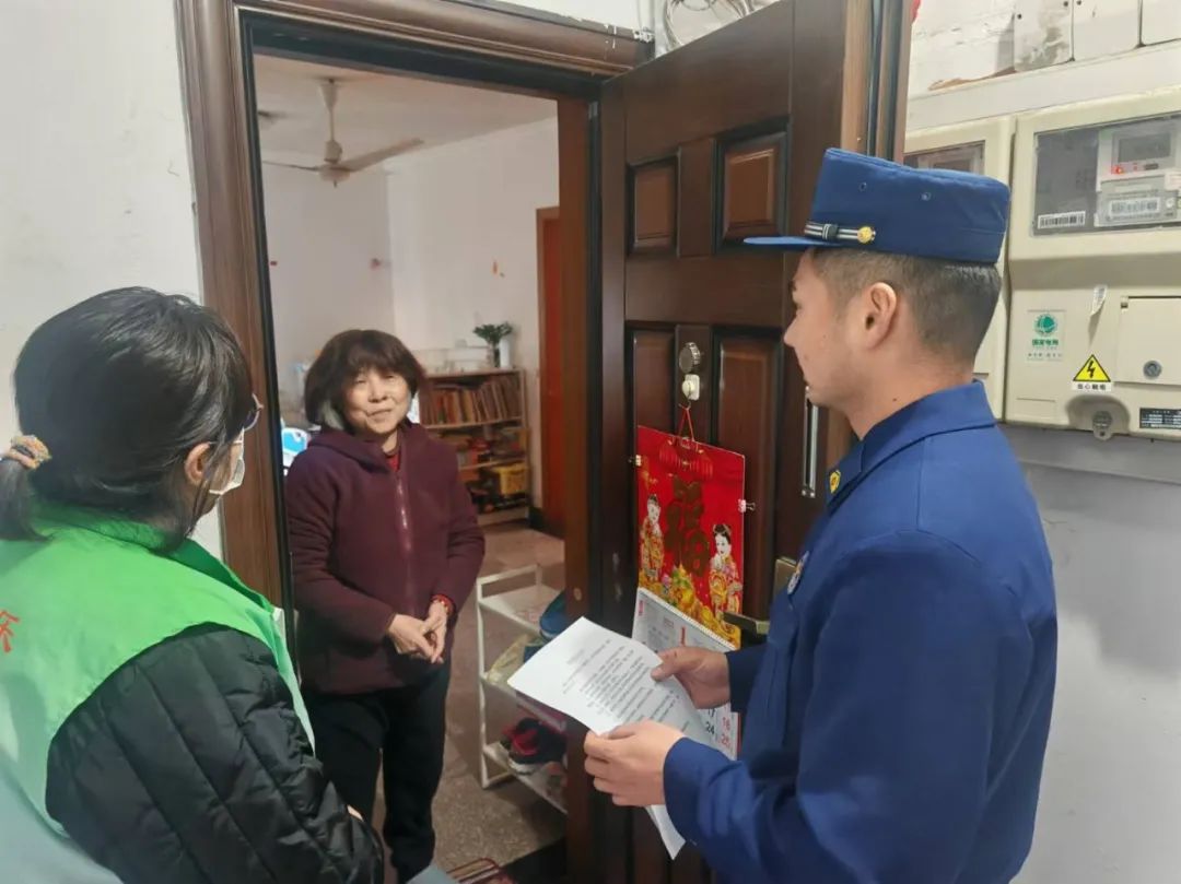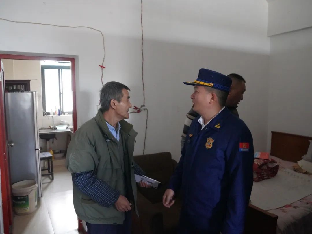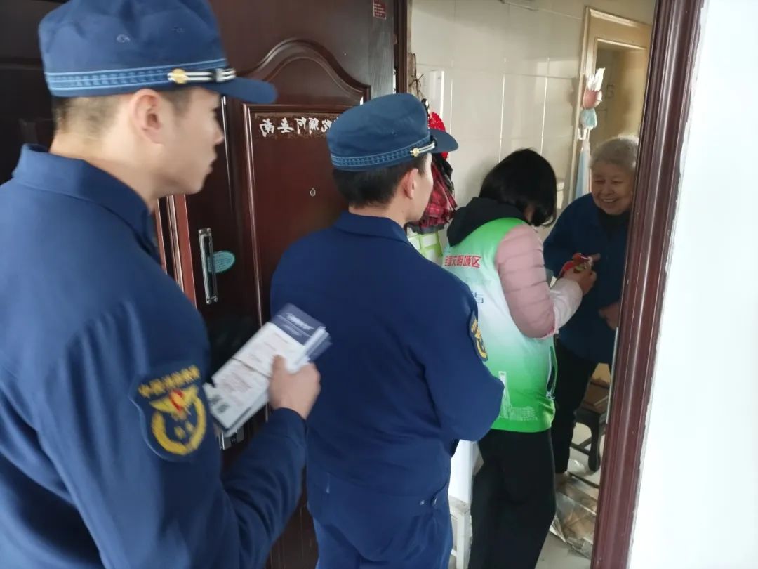 大队联合居(村)委员会深入居民社区和村民自建房屋,发放消防安全知识折叠宣传资料等。进行安全提示;特别加强对独居老人和独居老人的走访慰问,帮助检查老人家中的安全隐患,告诉老人冬季注意家中用火、用电、用气的安全。