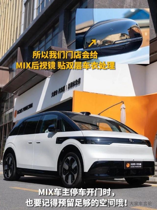 每个贴车衣的极氪 MIX,大家都会把双层车衣贴在后视镜上!