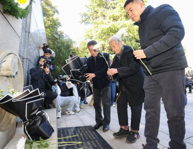 艾义英于2024年12月1日在纪念馆“哭墙”前祭奠亲人。
