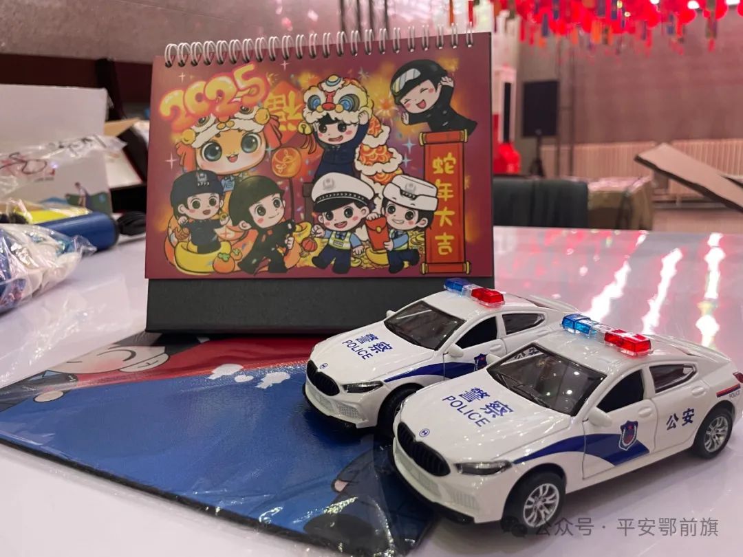 现场有600多件礼物,包括警察小熊、警车、警察挂件、警察台历等。