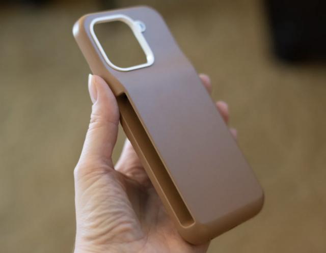 这款手机壳的下部稍微厚一点,从侧面可以看到明显的凹槽设计,Swippitt 准备了一块给它 3500 mAh 电池,并通过蓝牙技术向用户传递电池使用的相关信息。