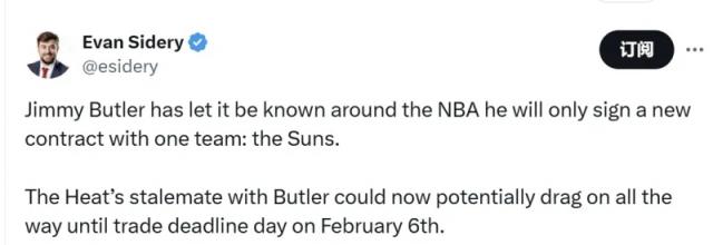 根据福布斯体育记者 Sidery 巴特勒已经向报道了 NBA 每个团队都解释说,他只会和太阳签新合同。