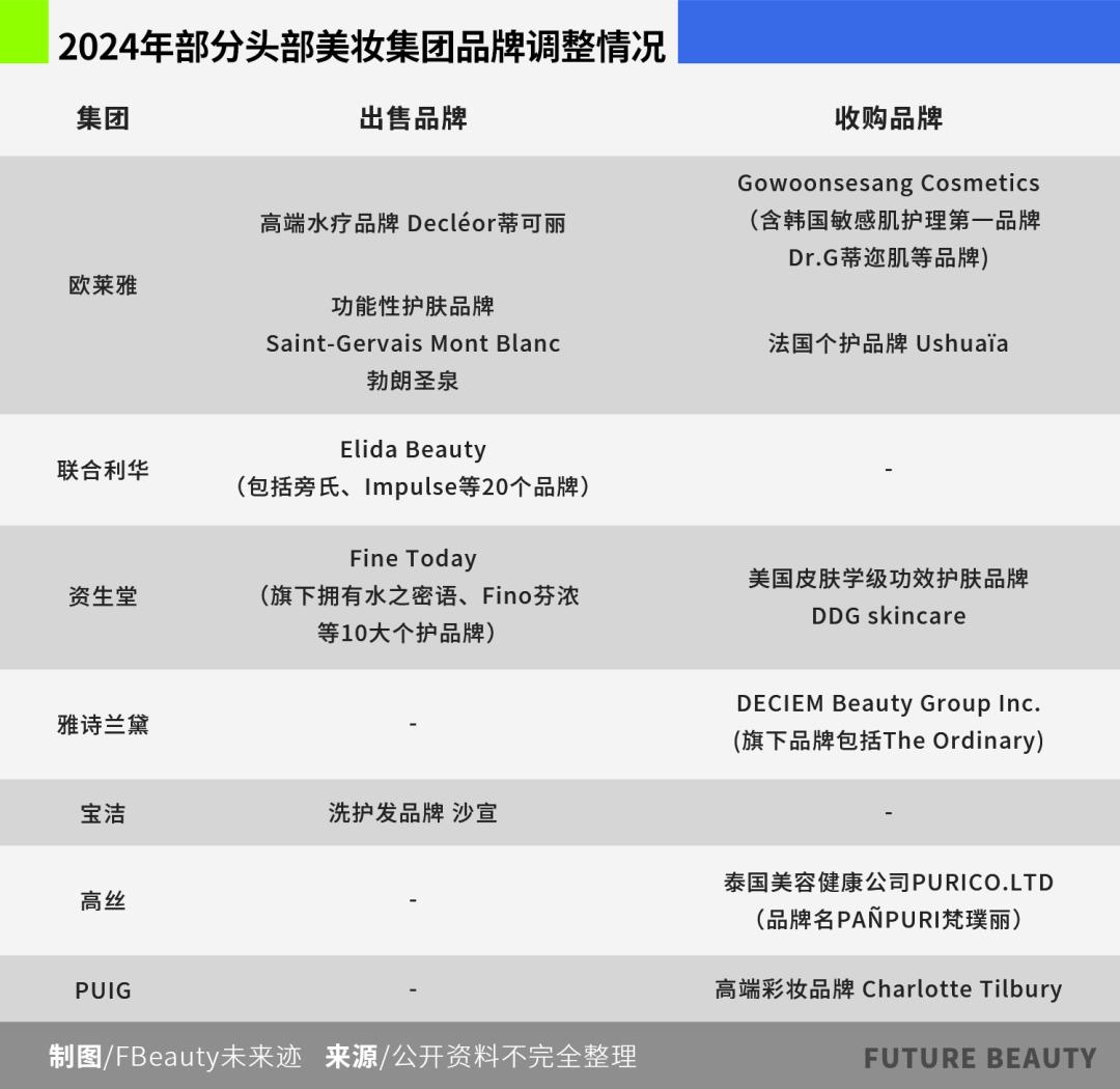 其实收购或者销售自己的品牌是跨国美容集团每年都会做的常见操作,但是观察可以发现,2024年品牌的“加减”明显不同于过去。