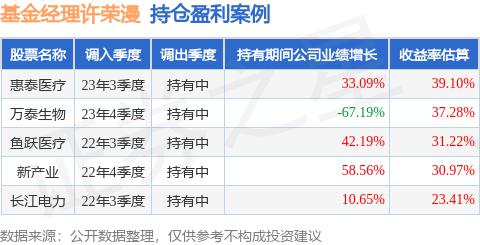许荣漫管理招商中证全指医疗器械 ETF 基金在 23 年 3 季度购买惠泰医疗,已连续拥有。 1 年又 1 每个季度。有期的估计收益率为 在此期间,惠泰医疗有39.1%。 2023 年至 2024 年中报告归属净利润增长达到 33.09%。