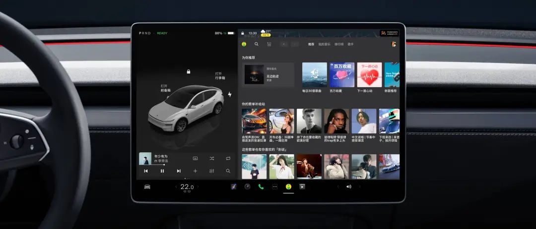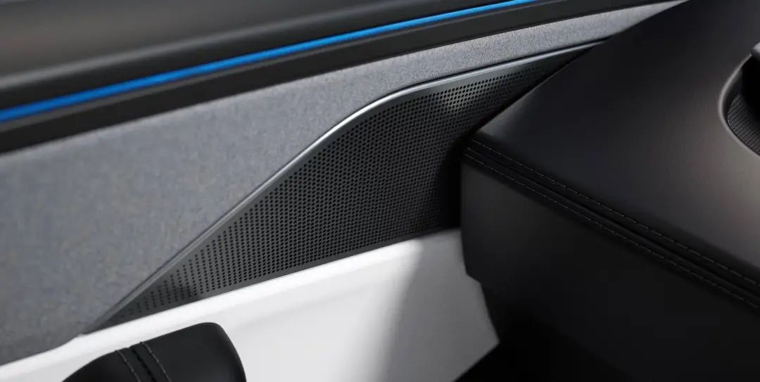 提到音箱,特斯拉也是为了。 Model Y 自主研发的音响系统带来了升级,长续航车型包括 1 一个低音炮在里面 16 个音箱(比 Model 3 少了一个低音炮),中音区的声音效果有所提高。