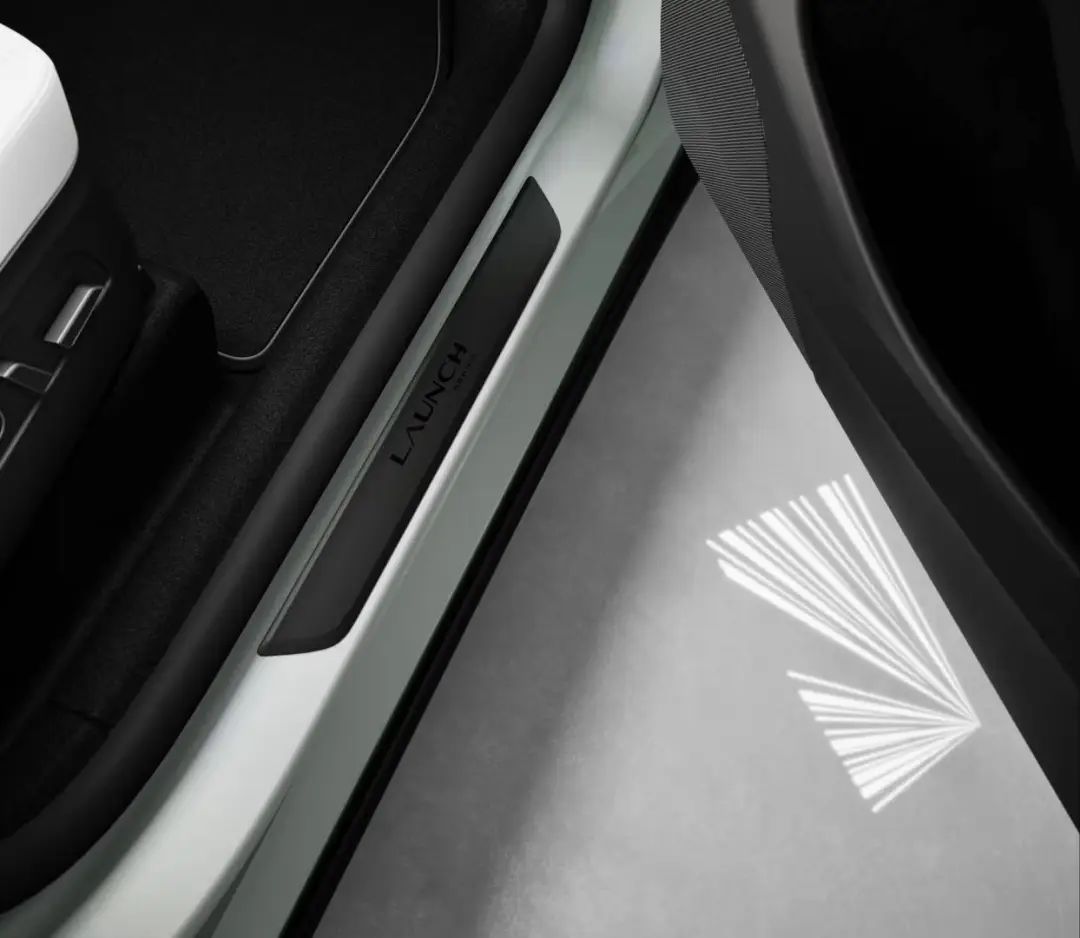 当你打开门时,你可以看到第一版的另外两个标志:迎宾灯勋章投射和踏板上的「LAUNCH(发射)」字眼。