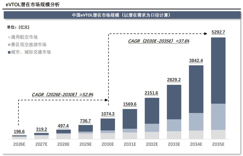 另一个隐性增量市场是200公里内的城际交通。eVTOL更高效方便,从城市枢纽站到景区、城市等定点出行场景。随着道路基础设施和空管系统的完善,eVTOL可能成为城际交通的补充方案。
