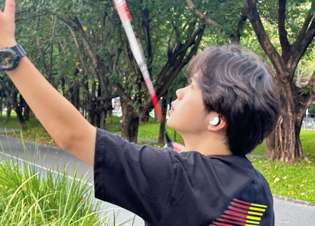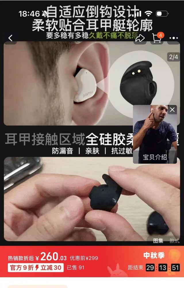 居然没有用弹性耳塞,塞进“耳洞”里固定耳机!