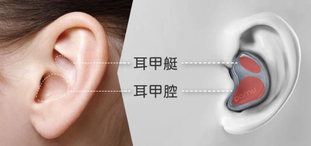 佩戴时,耳机内侧舒适的弹性鳍和凸起部分,会自动嵌入耳甲艇、耳甲腔区域,十分稳定。