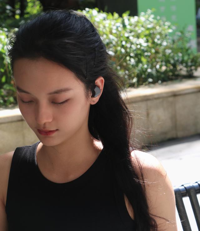 促使这款耳机听歌时能听到环境声,减少对耳朵的伤害,就像骨传导和气传导耳机一样。特别适合办公和运动佩戴。
