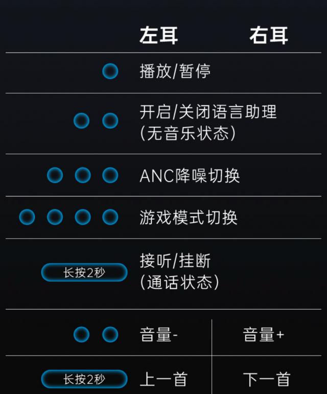 左 / 右耳长按 2 秒,可以转换音乐。