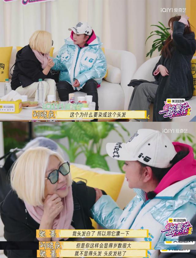 张蔷笑着感叹自己染头发是为了遮住白发,但这并没有阻止刘晓庆的话匣子。她直言不讳地要求对方改变发色,因为她看起来很“可怕”。