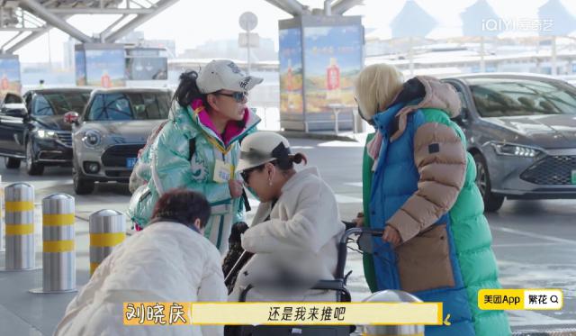 因此,74 年刘晓庆会精心照料 65 年倪萍,一群人会齐心协力照顾腿脚不方便的向太,推着她的轮椅前进。