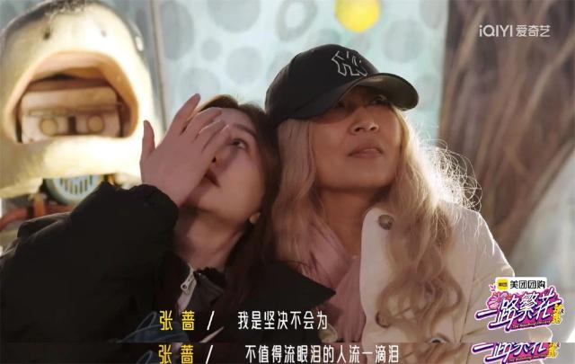 在飞天生活之前,我还以为自己是前辈的张蔷遇到刘晓庆就变成了乖巧妮,不仅回忆起过去给对方垫场的青春,还拿出口袋里的奶油话梅和蔡明、李小冉大方分享。