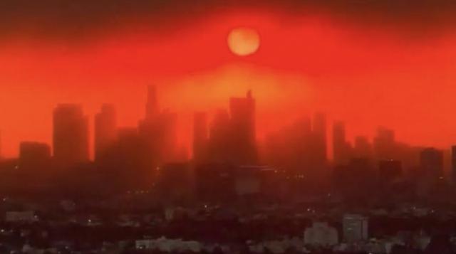 整个洛杉矶笼罩在红火和烟雾之下。从太空来看,“火云”像蘑菇一样遮天蔽日,无数被烧毁的房子似乎遭遇了战争。