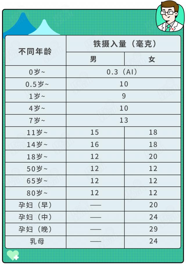 1~3 婴儿:每日摄入 12 毫克的铁;