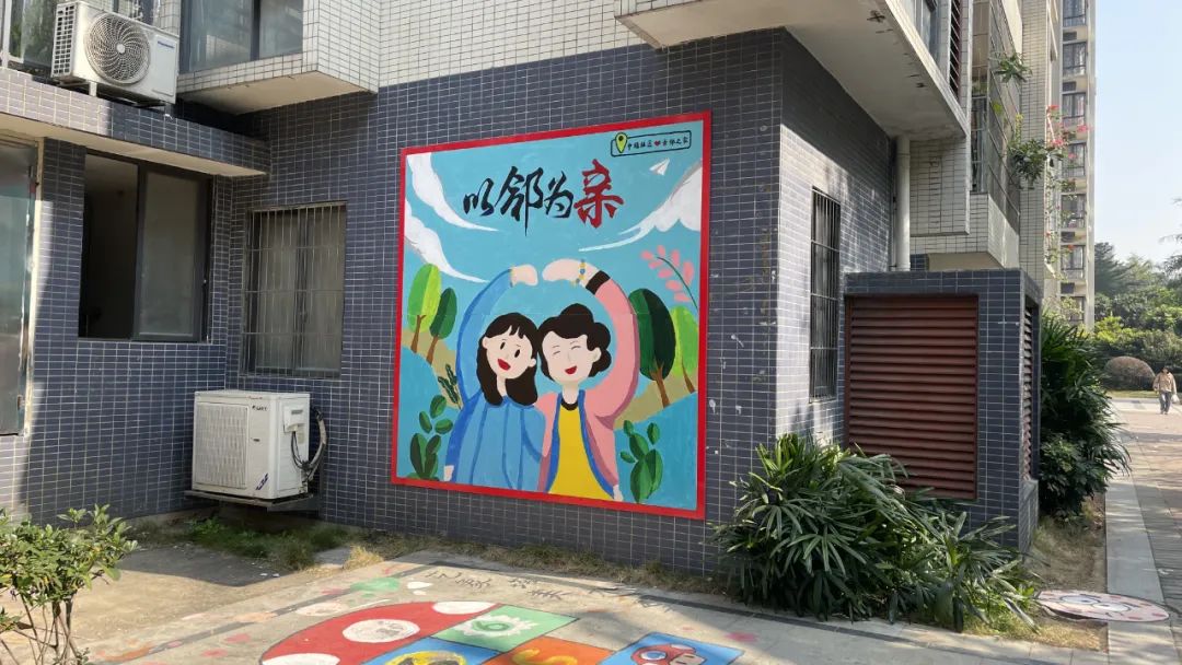 随着时间的推移,一部代表中福社区“邻居家”的精美作品缓缓呈现。原本凌乱的墙壁焕然一新,变成了一道美丽的风景线。