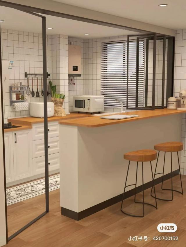 开放式厨房是小户型中最常见的,节省了很多空间。这种设计通常用于民宿和公寓。