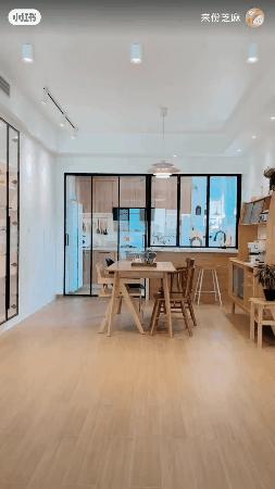 如果可以把客餐厅的两个空间互相打通,可以互相借用空间,厨房大,餐厅也大。