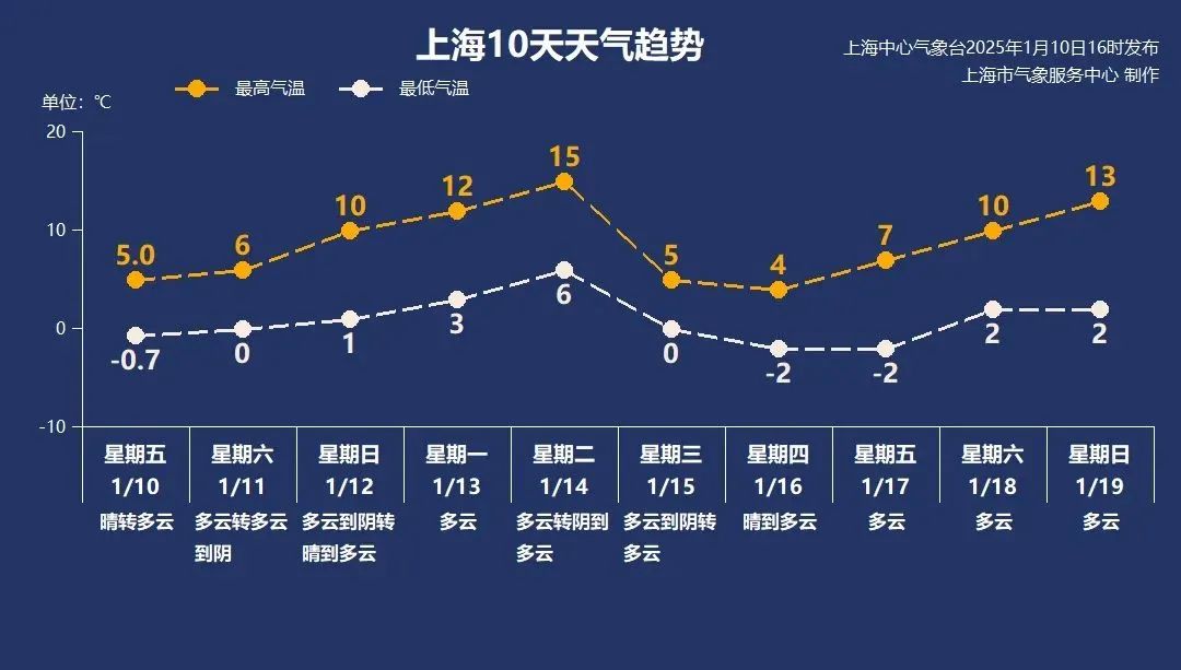 周日上午气温还在低位,白天有所回升,全天1-10℃。下周初将进一步升温,尤其是下周二,最高气温将飙升至15℃。冬季的大幅升温代表着强冷空气的到来。下周三,当地政府将经历一个明显的强风和冷却天气的过程。气温像过山车一样暴涨暴跌。请合理安排你的旅行和生活。