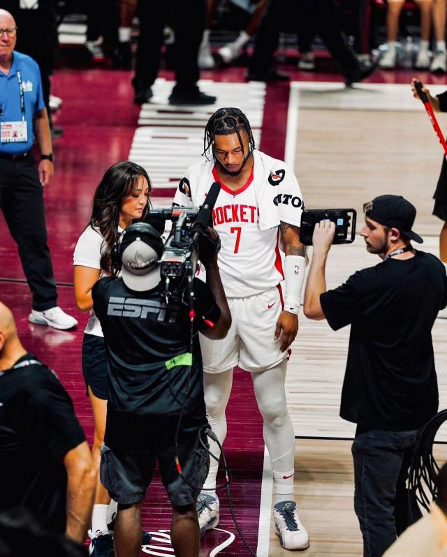 1 月 8 日,火箭 135-112 击败天才。惠特摩尔替补出战 17 分 53 秒,8 投 6 中,三分 3 中 3,罚球 2 中 2,砍下 17 分 1 篮板 1 断球。说球队完胜是有道理的,他的数据也不错,惠特摩尔应该很高兴。但是在比赛结束之前,他开始从场上走到更衣间。