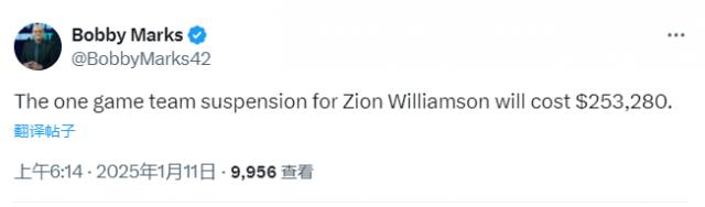 锡安停赛一场损失25万!没有赶上航班 多次训练迟到 永久停战的琼斯