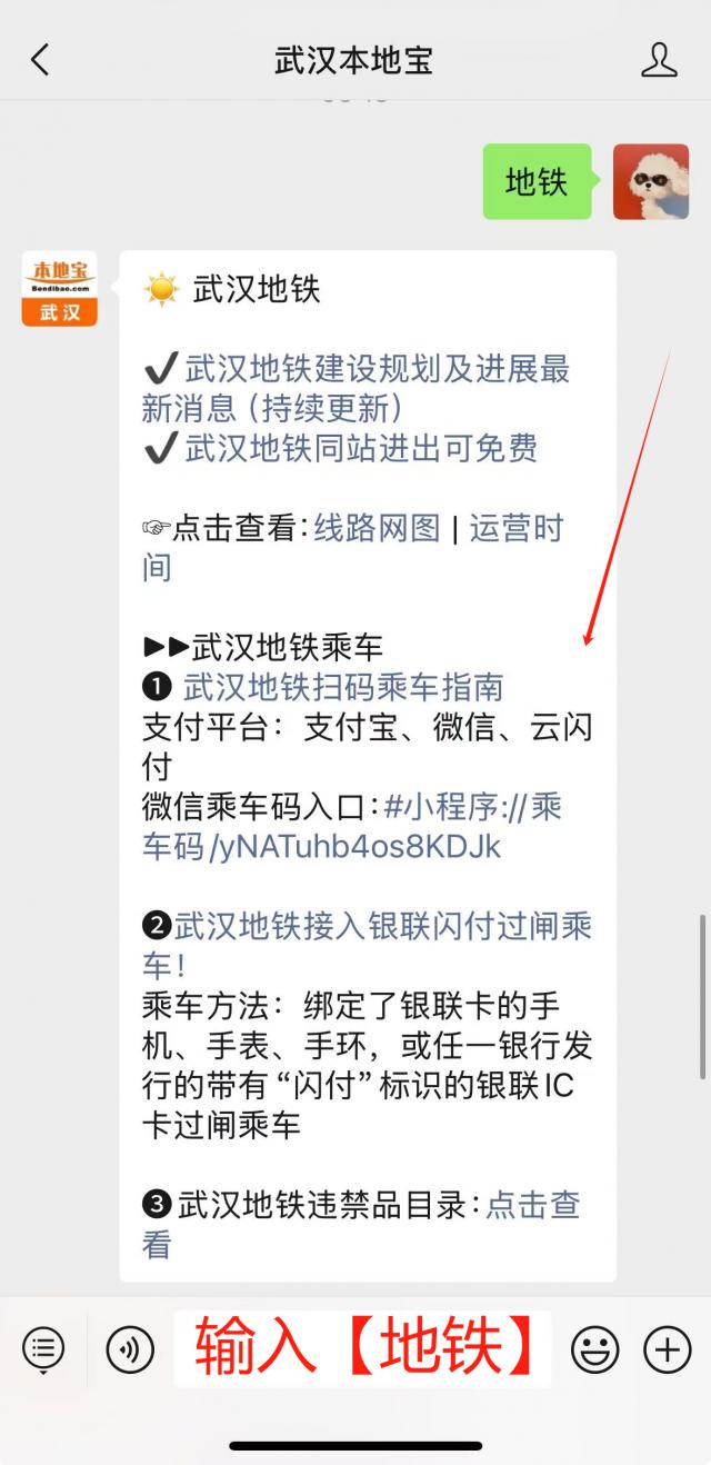 能扫描下面的二维码,跳转【武汉本地宝】回复微信官方账号【地铁】关键字,即可获得:武汉地铁票价查询、首末班车查询、武汉地铁最新路线图(清晰版)等