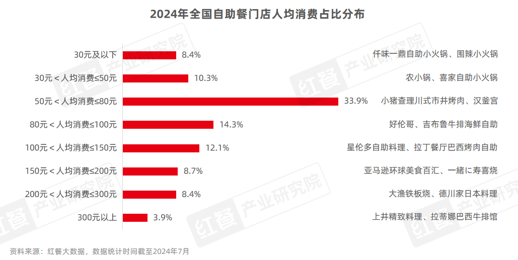 △据红餐统计,100元以下的自助占据了大部分市场。