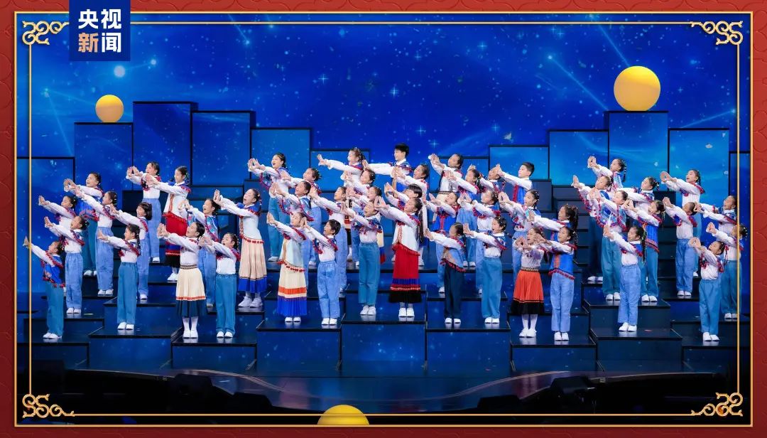 在“如意”的舞台上表演满满的节目。以“红包”为主题的歌舞节目,将剪纸、皮影、中国结、风车等非物质文化遗产和春节民俗元素融入到歌词、表演和时尚设计中;来自四川大凉山的丫丫合唱团唱响了天籁童声。在虚拟现实等技术的加持下,一个舞台变成了一个广阔的宇宙,再现了九天的梦想。