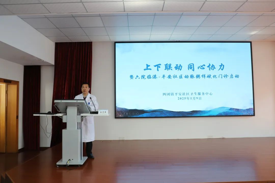 为了进一步提高社区居民对动脉硬化性疾病的认知,改善不良的生活方式和饮食习惯,规范合理用药。1月9日,四团镇平安社区卫生服务中心与上海市第六人民医院临港医院心内科联合举办“上下联动” 与“心”合作”暨六院临港-平安社区动脉硬化门诊启动活动。