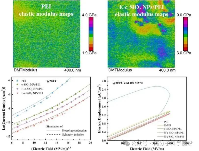 基于此,华北电力大学杨邈昊与华东师范大学田博博、清华大学党智敏团队合作,以抑制高温高场下电介质薄膜泄漏消耗突然增加为核心,基于加强聚合物电介质薄膜表面结构的策略,完成了高温高场下电极注入的抑制。在200℃下,在保持充放电效率90%的前提下,电介质薄膜的储能密度可达4.26。 J/cm3。有关成果以华北电力大学为第一作者和通讯单位,以“Surface Strengthening of Polymer Composite Dielectrics for Superior High-Temperature Capacitive Energy Storage“问题发表在能源领域国际期刊Advanced Energy 在Materials上。该研究得到了科技部国家重点R&D计划储能与智能电网项目、国家自然科学基金创新集团基金、重点基金、青年基金、青年基金等项目的支持。合作伙伴还包括国家电网中国电力科学研究院张英高和怀柔国家实验室教授谢庆。