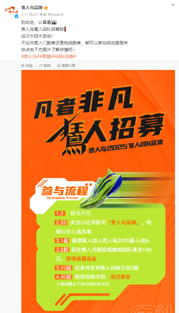 值得注意的是,贵人鸟的运动鞋业务似乎还在运行。贵人鸟官方微博显示,贵人鸟还参加了厦门马拉松的相关活动: