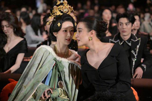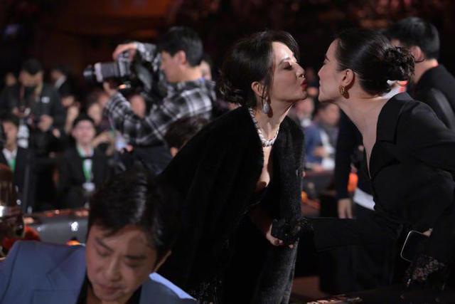 在内场,宋佳也十分活跃,前排与杨紫互动聊天,转头与佟丽娅搞亲吻,美女之间的互动气氛十分充实。