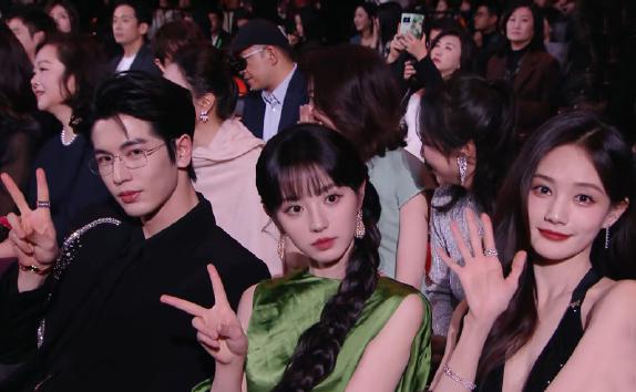 张凌赫,田曦薇,李一桐并排坐着,俊男靓女的组合很有魅力。 个体看上去满脸春风,台下不停地聊天,面对镜头比手势,很像参加年会时激动的我们。