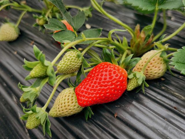 随着草莓季的到来,凤冠草莓园的每一个草莓果实都是鲜艳多汁的,主要是推广高品质。游客可以在温室里悠闲地穿梭,选择自己喜欢的草莓,享受这个冬天的甜蜜时光。