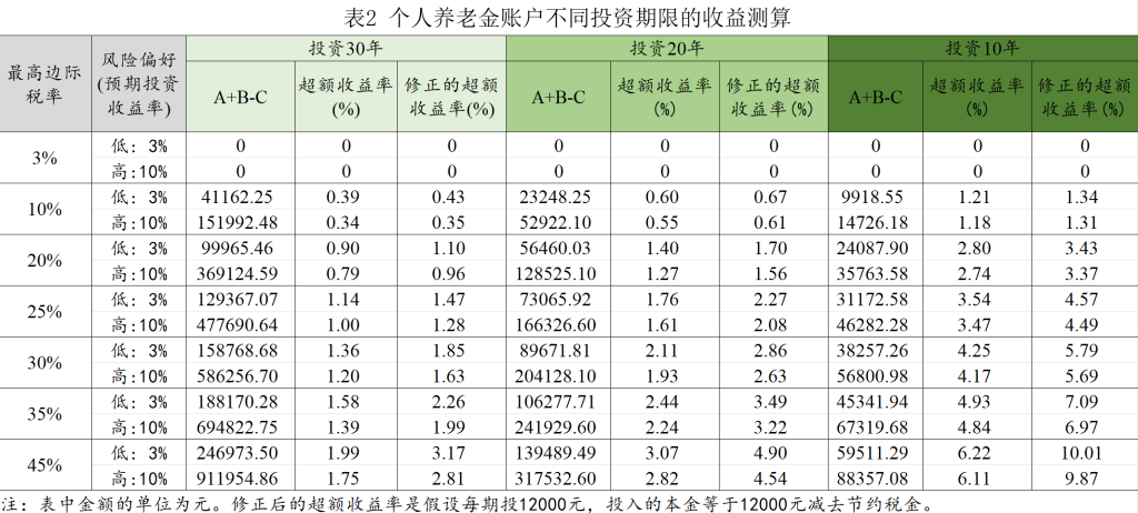 (4)值得注意的是,边际税率为3%的人,无论风险偏好如何,投资年限是长是短,都不会通过个人养老金账户带来超额收益。