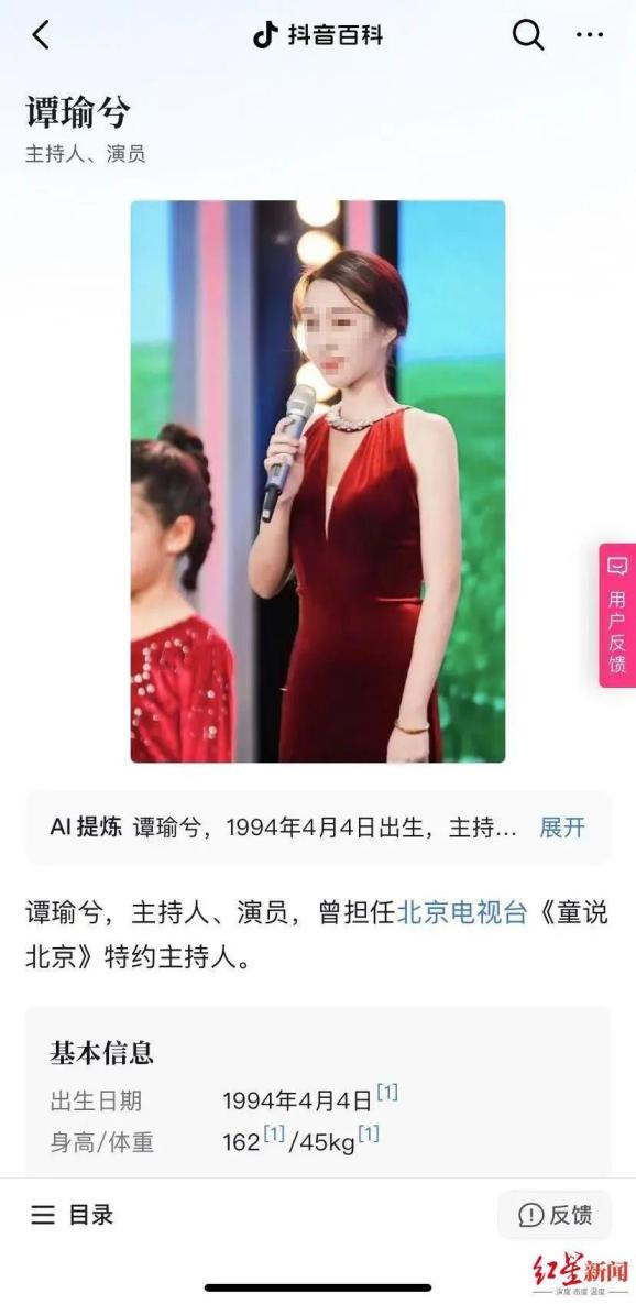 ▲关于谭昭君的抖音百科介绍。