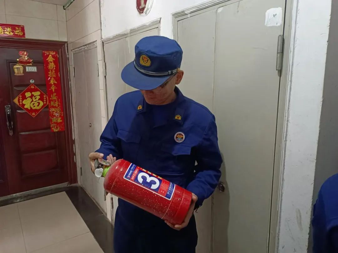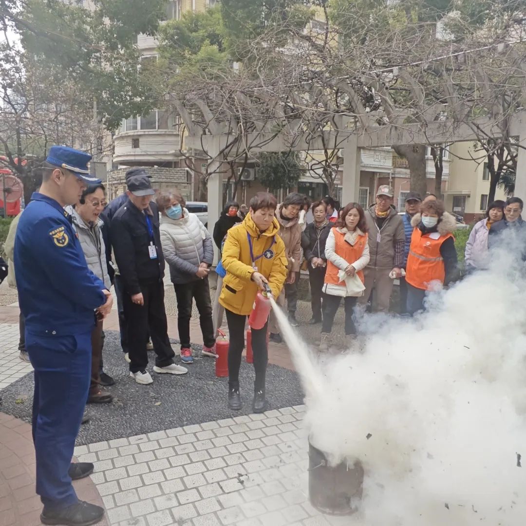 在江杨家园,消防员仔细检查走廊内的灭火器是否有效,疏散通道是否畅通,消防栓是否完好可用,喷淋设施是否完好。在新港市居委会,消防员通过开展专题讲座,讲解墙面消防栓、消防喷头装置等消防设备的使用方法,教授居民应急自救知识。