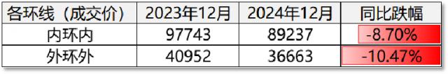 我拉出过去 1 每年各环线挂牌价格走势,外环外确实是过去一年跌幅最大的。