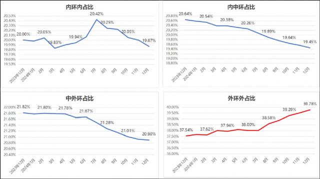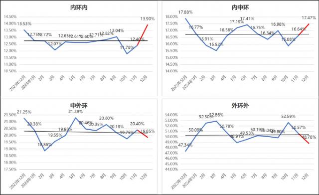 而且是存量上市,也就是每个环线每个月都没有卖出的房子占全市房子库存的比例。