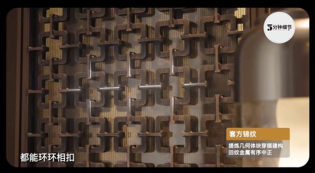 举例来说,作为礼仪门堂的屏风,寓意吉祥的套方锦纹图案。