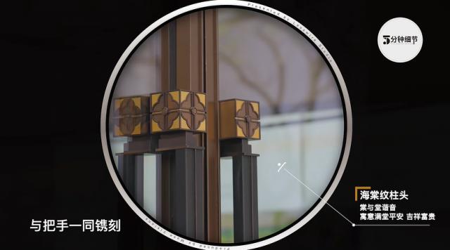 整个区域的门把手和柱头一起刻上了 36 朵海棠纹样