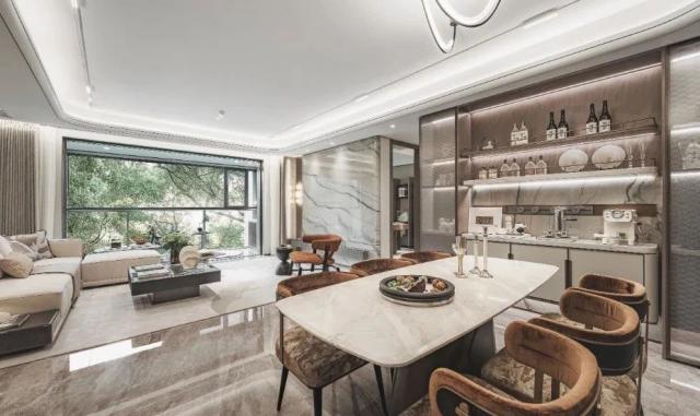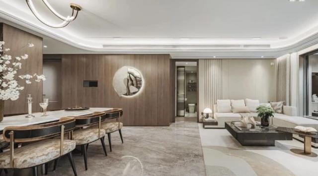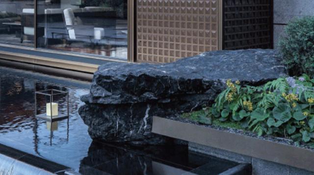 豪华石材纹理的持续使室内看起来像一幅连绵不断的山水画。
