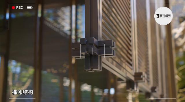 在传统建筑中,用于承重的榫卯构件被翻译成现代金属线条结构