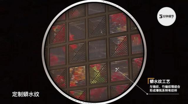 将锦纹莽水纹与竹编纹路相结合,形成寓意天道酬勤,上善若水。