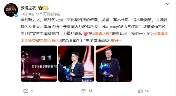 其中,悟空黑神话:悟空、原生鸿蒙 OS 获得年度创新突破知名度事件。
