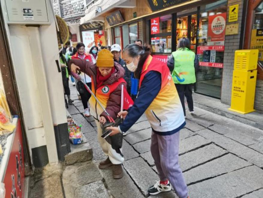 青浦区志愿者协会副会长丁小木说:“这是2025年的第一次志愿者活动。我们希望通过宣传文明旅游,方便地捡起活动,让我们的古城水更清澈,风景更美丽。”