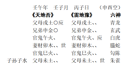 应该是合理的。父戌土为诉状,临青龙是土地。有两种小舅子,但是他们没有太多的能力。他们学习不成功,伏父受克,还有一个姑娘。刘先生的妻子(也就是占卜中的女孩)比他的两个兄弟更有能力,所以他们在这里选择五卦作为对象:①阳变阴卦,金生水,申水合局。②兄申化申与日月相配,合在外面。