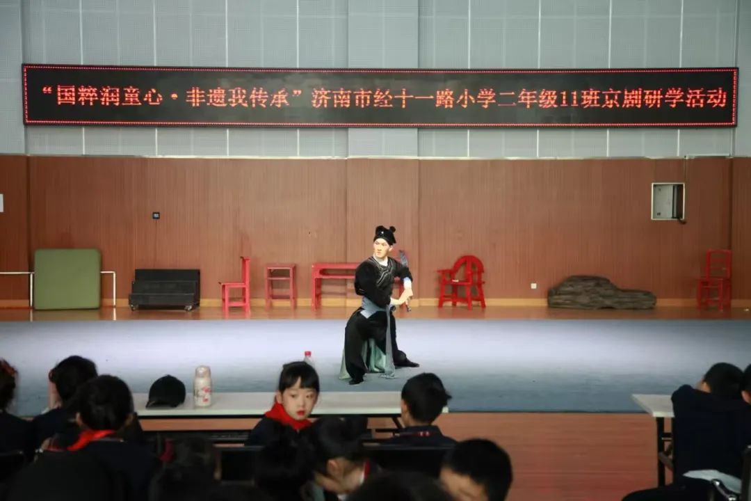 1月9日,济南戏曲艺术中心(京剧系)举办了“国粹讲堂”京剧艺术研究活动,邀请济南通过十一路小学的师生参观中心,互动体验京剧表演的幕前幕后,近距离领略“国粹”艺术的独特魅力。