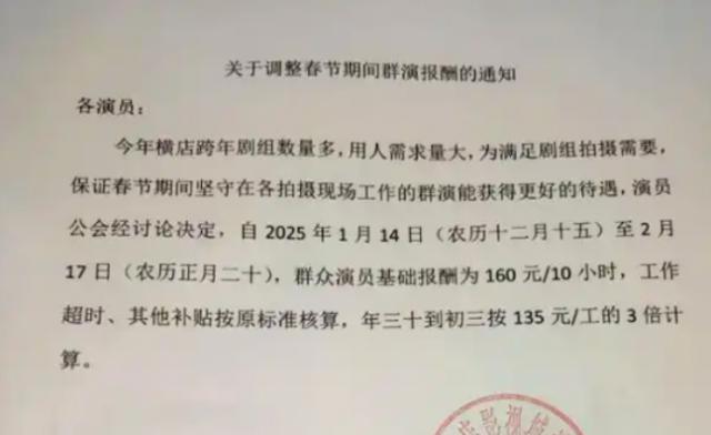 为群众演员(以下简称群演)调薪